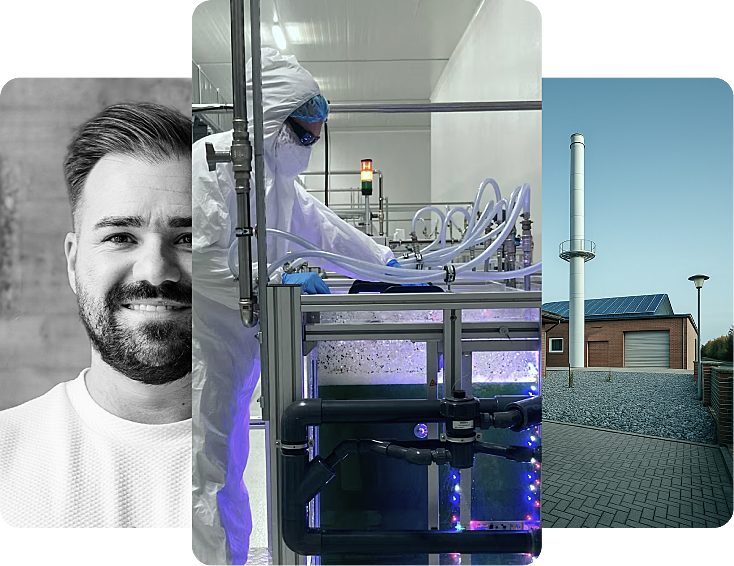 Highlights: 2–4 g/L, ≈ 6.000 Bh/Jahr, 95 % Wasserrecycling, Reinraumklasse D, QC/QA-Workflows.