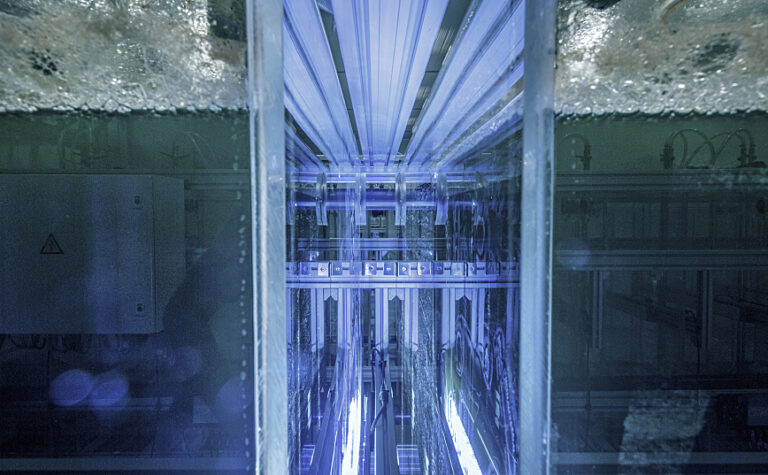 Geschlossene Becken im Reinraum. Vierkanaliges LED-System mit einzeln steuerbaren Lichtpunkten für